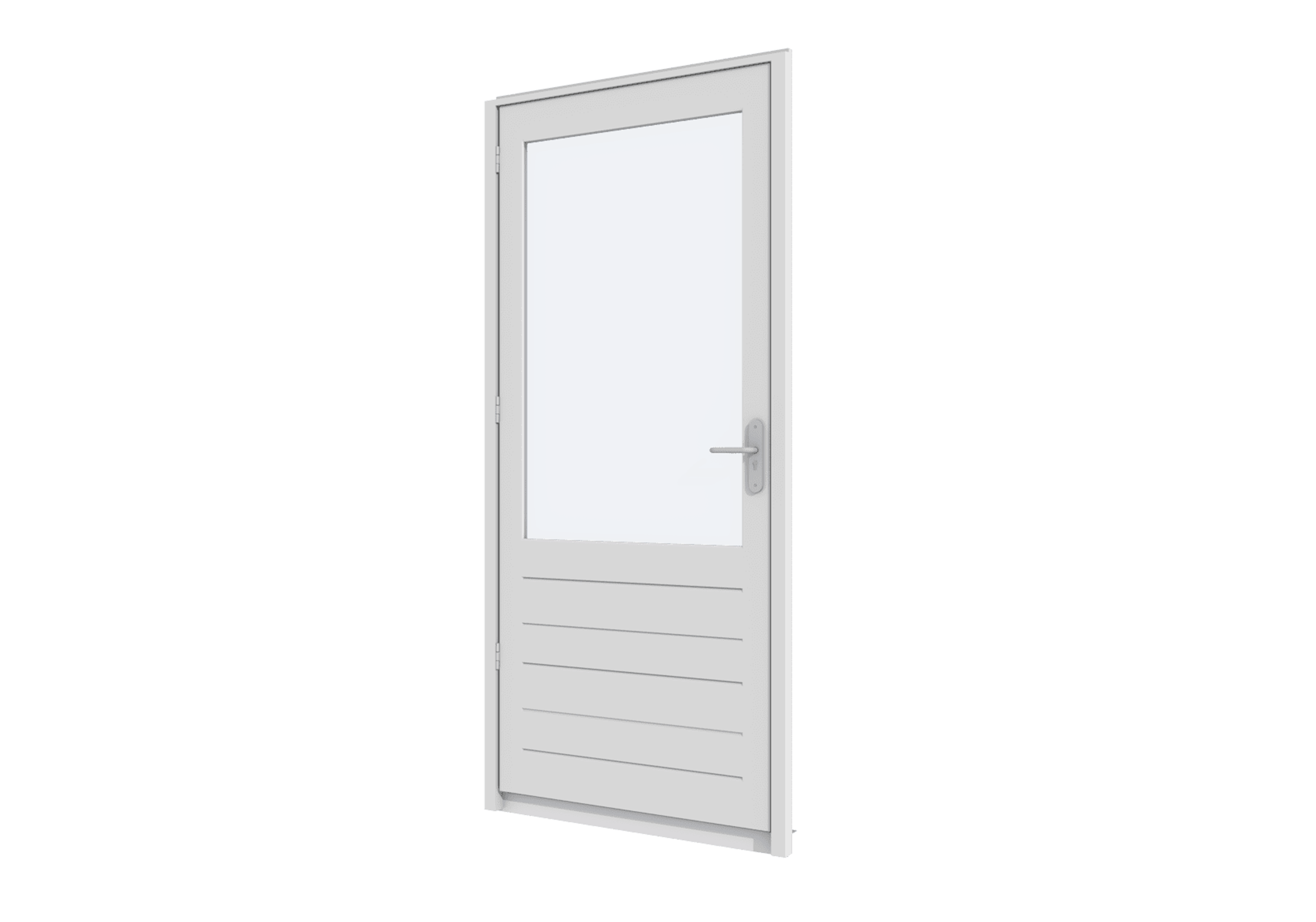 Onze bergingsdeuren hebben standaard een vaste buitenmaat van 1014 × 2220 mm en zijn altijd naar buitendraaiend, wat de montage eenvoudig en vlot laat verlopen. Het deurblad is 928 mm breed en 2113 mm hoog, uitgevoerd als stapeldorpeldeur met zes dorpels en een borstwering van 668 mm—een solide keuze voor praktisch gebruik.