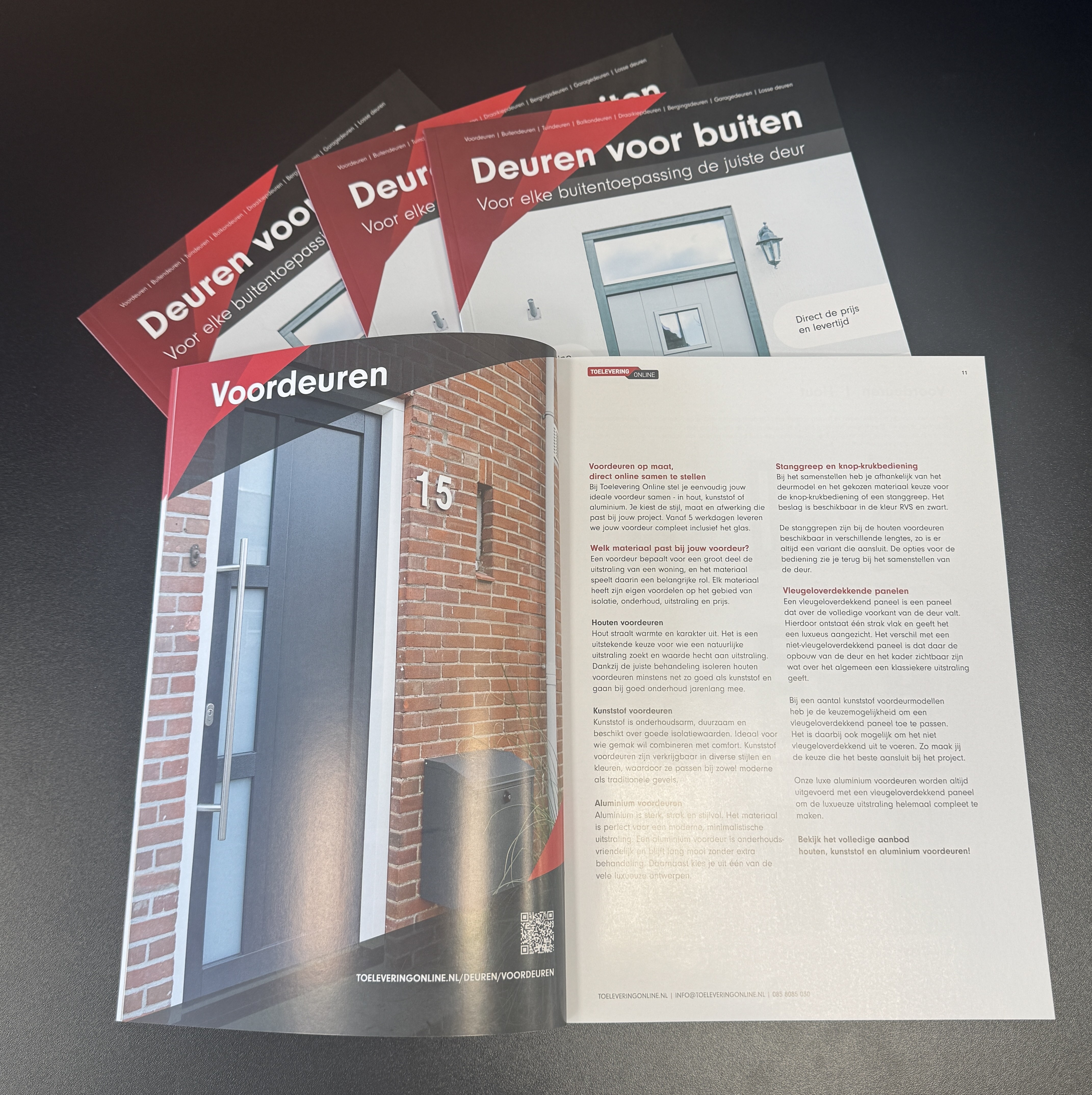 Onze brochure geeft jou als zzp’er of aannemer een compleet overzicht van het aanbod in houten, kunststof en aluminium deuren voor buiten.