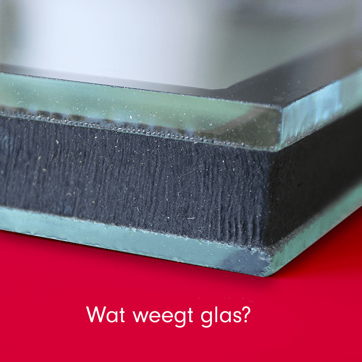 Bij het monteren van glas moet je rekening houden met het gewicht van glas. Het gewicht van glas wordt berekend door de oppervlakte van het glas (lengte x breedte) te vermenigvuldigen met de dikte in millimeters van het glas. De uitkomst hiervan moet vermenigvuldigd worden met 2.5. Waarom 2,5? Omdat glas 2,5 kg per vierkante meter weegt, per mm dikte glas.