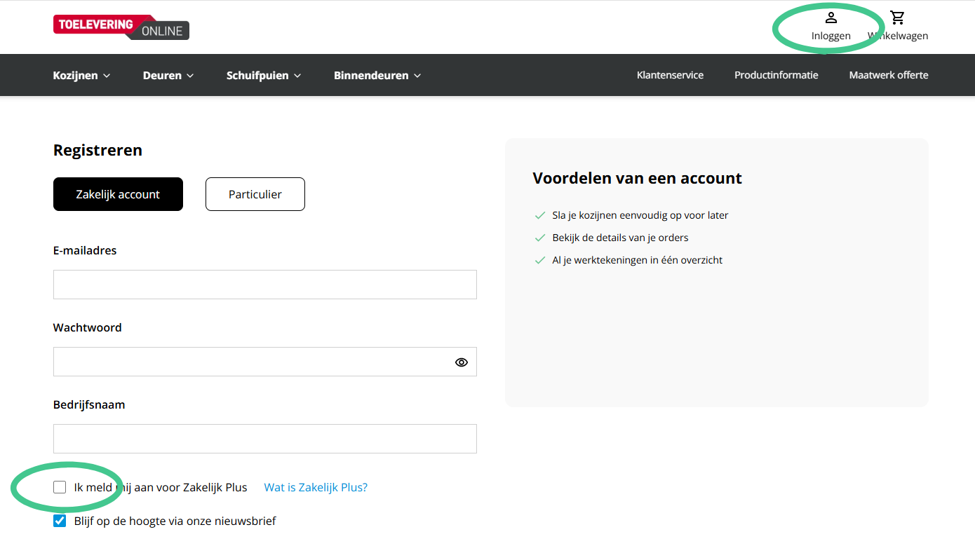 Bij Toelevering Online willen wij jou zo zorgeloos mogelijk je kozijnen laten bestellen. Zo hoef je minder tijd te besteden aan administratie en kan je meer tijd besteden aan jouw klus. Met de voordelen van Zakelijk Plus wordt het bestellen van kozijnen nog gemakkelijker voor jou en je kozijnklant. Lees hier hoe jij je kan aanmelden voor Zakelijk Plus.