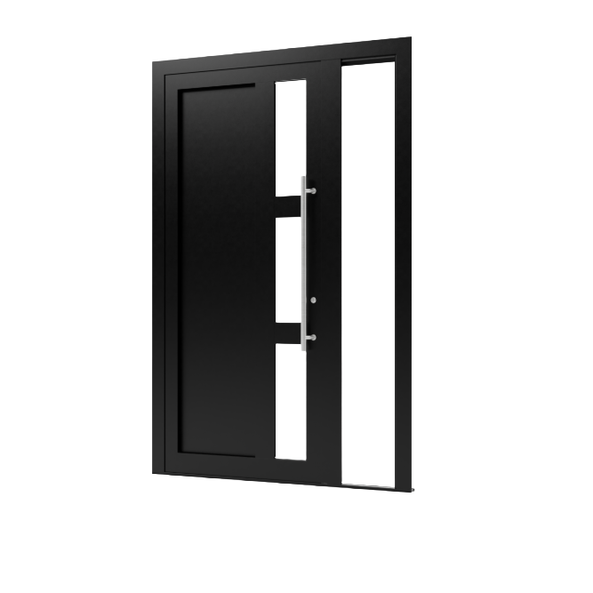 Ontdek de aluminium voordeur TA06 met zijlicht rechts (binnendraaiend). Deze moderne voordeur heeft een strak en minimalistisch design dat perfect past bij eigentijdse woningen. Het zijlicht aan de rechterzijde zorgt voor extra daglicht in de entree en geeft de hal een ruimtelijk en open gevoel.