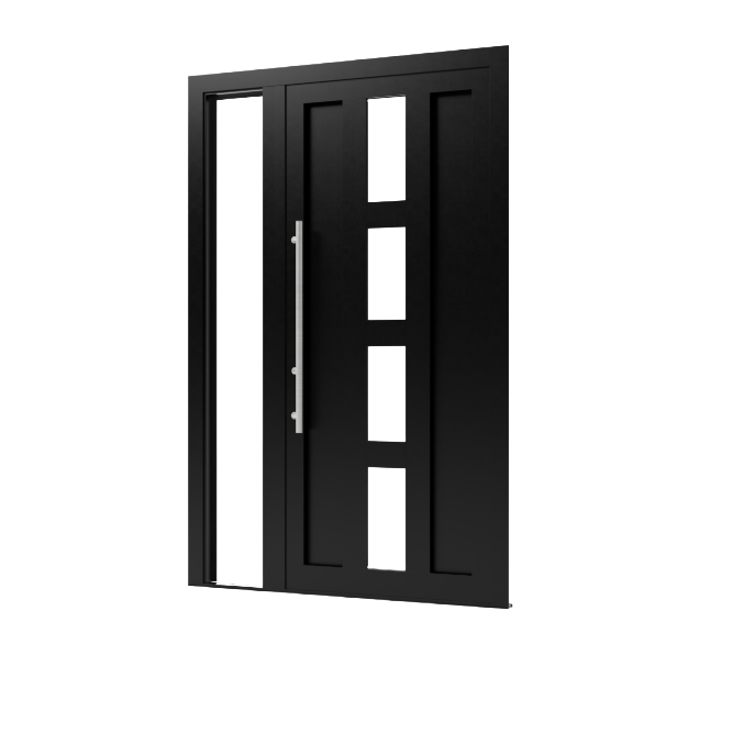 Ontdek de aluminium voordeur TA07 met zijlicht links (binnendraaiend). Deze moderne voordeur heeft een strak en stijlvol ontwerp dat perfect past bij hedendaagse woningen. Het zijlicht aan de linkerzijde zorgt voor extra daglicht in de entree en geeft de hal een open en ruimtelijk gevoel.