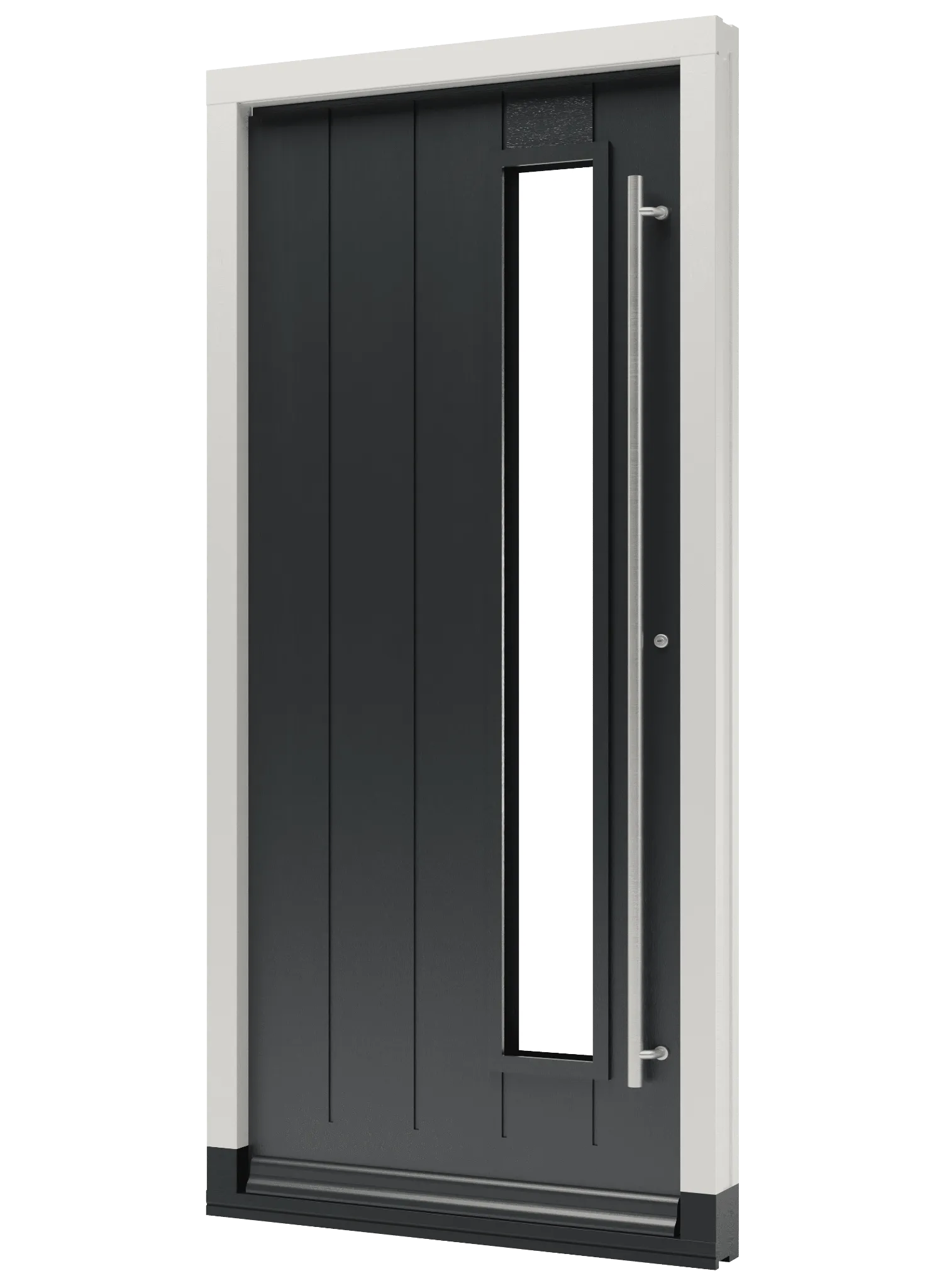 Bekijk hier onze houten voordeur TH13 met een glasvak en verticale groeven. Bij het samenstellen heb je de mogelijkheid om diverse opties te selecteren voor de bediening met onder andere een knop-kruk bediening en stanggrepen in diverse kleuren. Bestel jouw luxueuze houten voordeur eenvoudig bij Toelevering Online!
